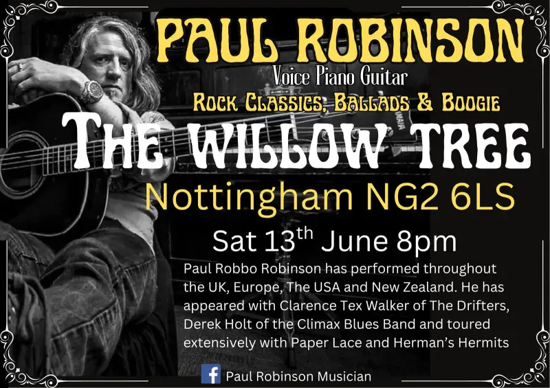 Join us on Saturday, 13th June, to enjoy Paul Robinson, a solo guitar, piano, and voice. He has toured and performed with some top acts. Book a table to enjoy the show or just turn up on the night, have a drink, and enjoy the vibe